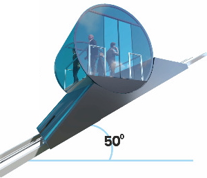 Very strong transverse & longitudinal stability of Funicrest as well as ARPS, keeping the passenger platform always horizontal. The system can scale very steep and varying-angle slopes safely.